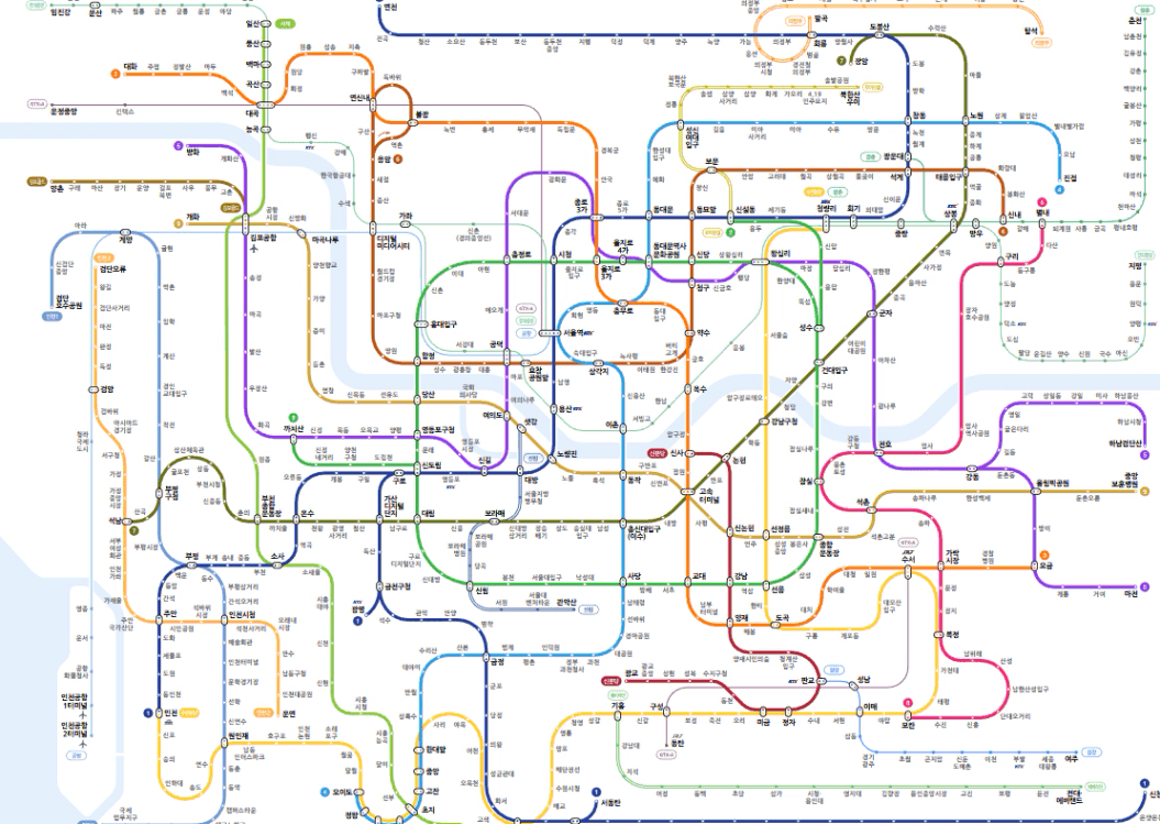 지하철 노선을 백지도 위에 그려봤습니다~~