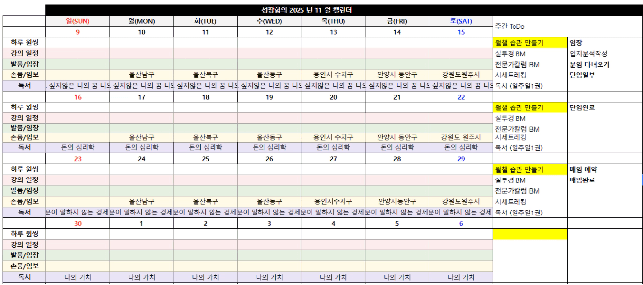 늦지않았다!! 다시 정신차리고 11월 계획 세워봤습니당!! :)