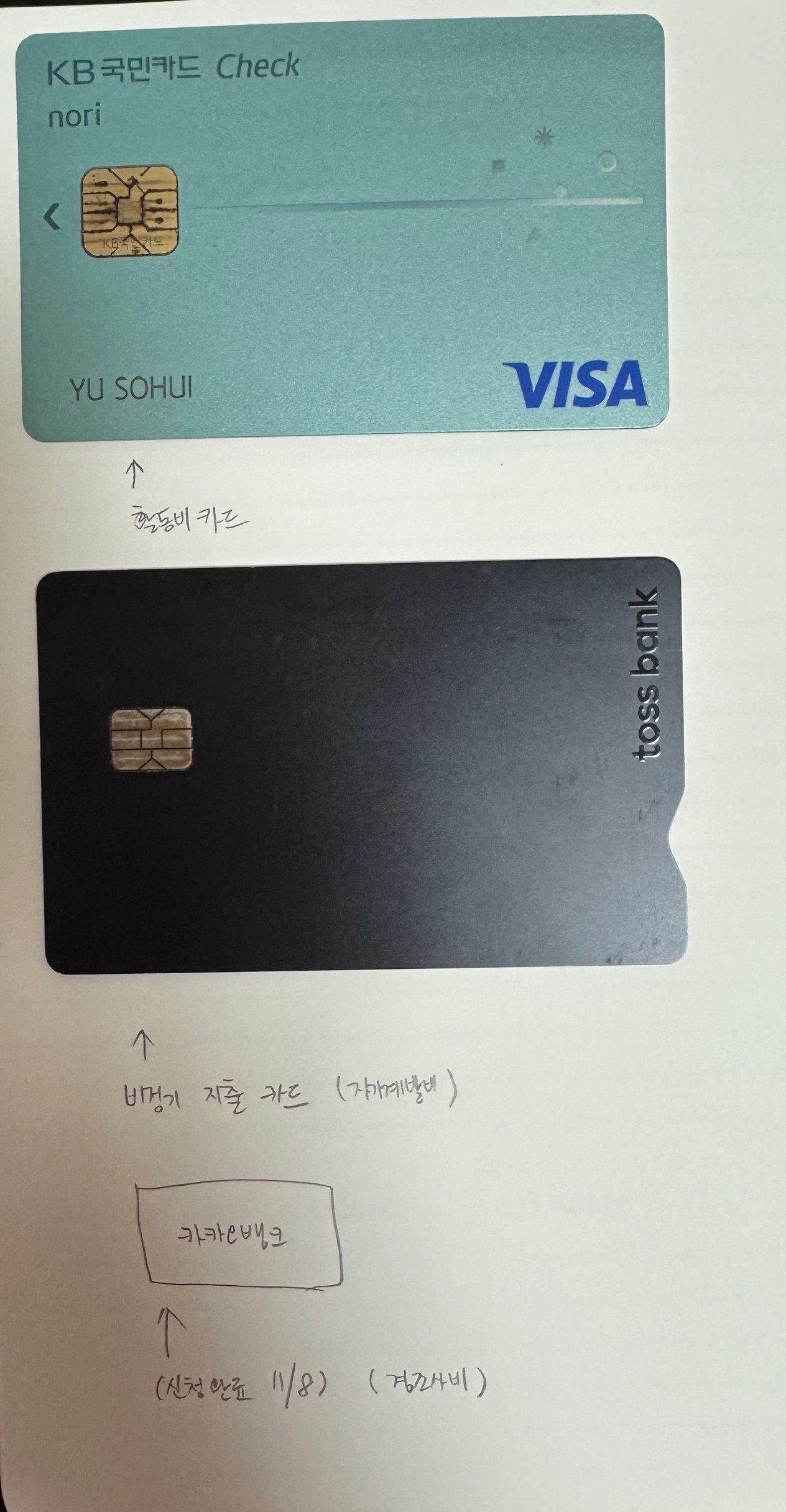 1. 용도별로 나눈 카드 인증샷 (모바일 통장쪼개기 인증샷도 좋아요!)