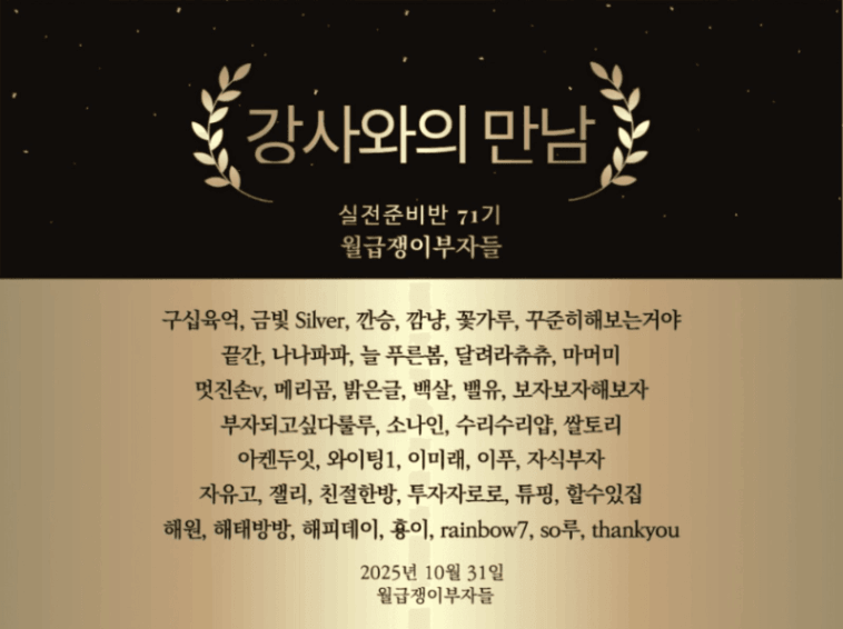 25년 열중반, 실전준비반, 지금은 서울투자기초반의 배움을 통해, 만남을 통해 커다란 즐거움을 얻고 있습니다.