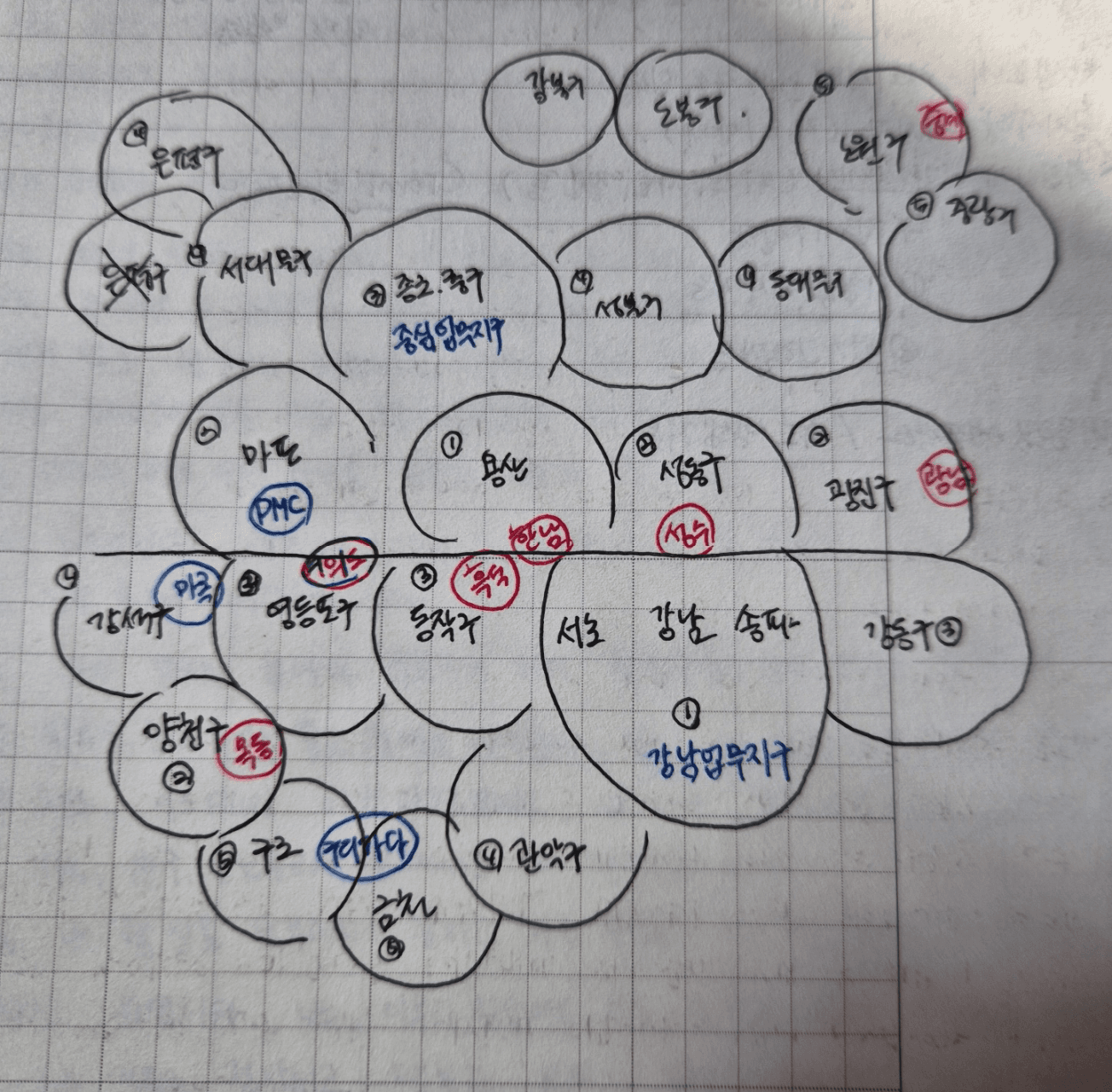 멘토님께서 말씀하셨던 것처럼 직접 노트에 지도를 그려보면서 다시 한 번 머리에 집어넣었습니다!!
