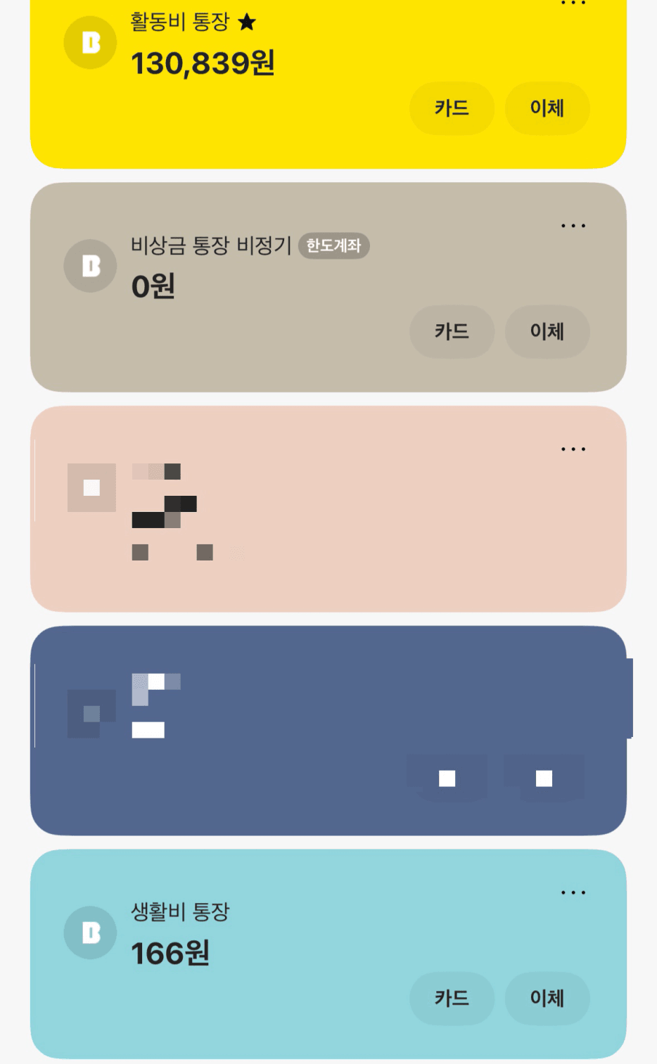 1. 용도별로 나눈 카드 인증샷 (모바일 통장쪼개기 인증샷도 좋아요!)