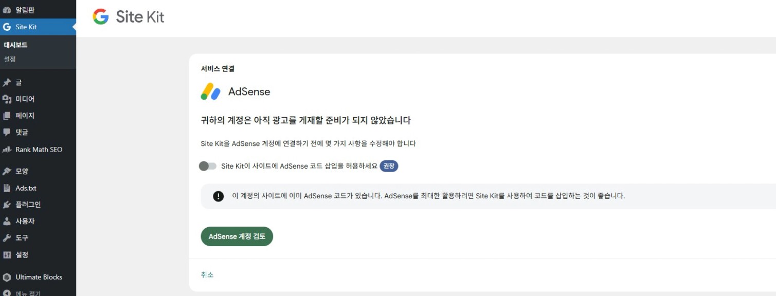 질문 내용: 지난 11월 1일에 애드 승인 신청 넣었고 아직 상태는 계속 준비중 입니다. 제 워드프레스 관리자 홈페이지에 아래 처럼 창이 뜨는데 문제 없는 걸까요?
