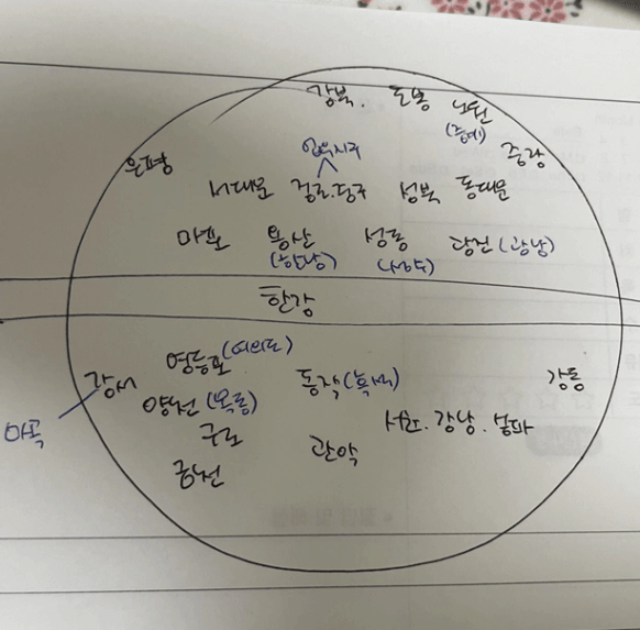 <숙제!> - 서울 행정구역은 알고 있었는데 그 위치는 정확히 모르고 있었다는 사실을 이번에 알게 되었습니다. 광진구가 한강 위쪽에 있었다니..