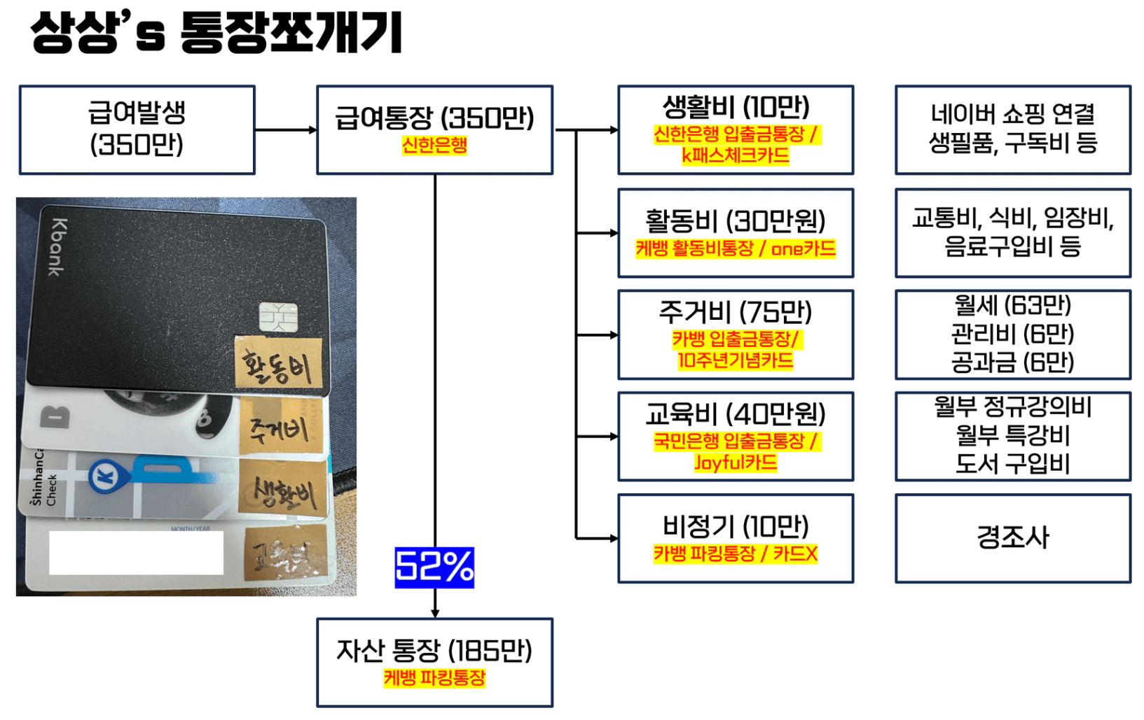 재테크기초반 1주차에서 너나위님이 말씀해주신 방법대로 통장 쪼개기를 수행해보았습니다.