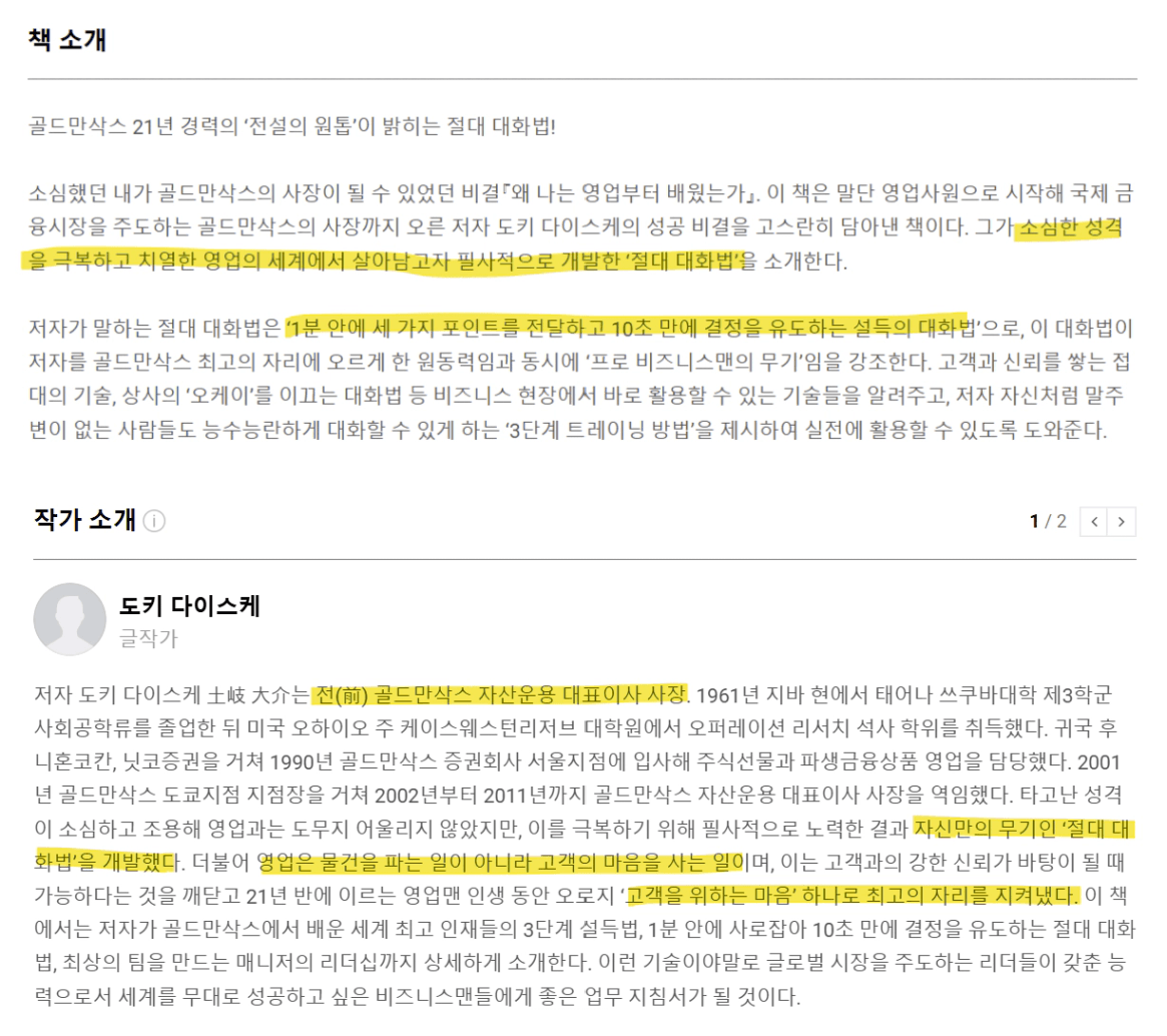 | 한줄평 | 직무가 영업인 사람에게만 필요한 책이 아니다. 투자에도, 우리의 인생에도 영업 스킬이 필요하다 |