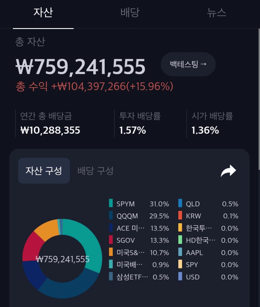 포트폴리오 구성을 보시면 지난주에는 없었던 SGOV라는 종목이 추가된 걸 보실 수 있을겁니다.
