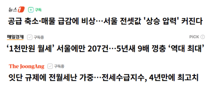 이런 상황이다보니 전/월세 가격이 상승하는 것은