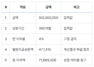 그냥 "월 원리금"을 보고 판단하면 됩니다.