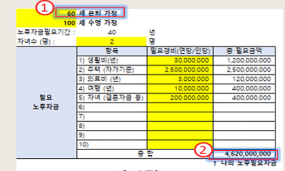 저의 목표금액은 46억이며 60세 은퇴를 목표로 적었었네요