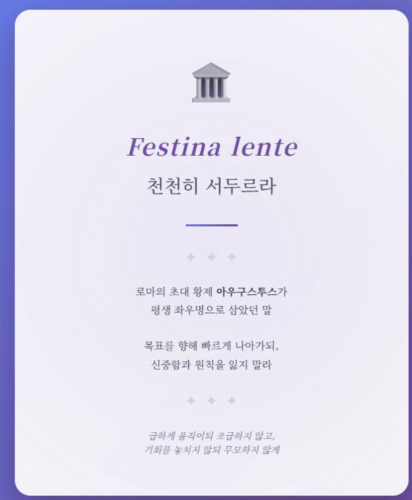 로마 초대 황제 아우구수투스의 격언처럼