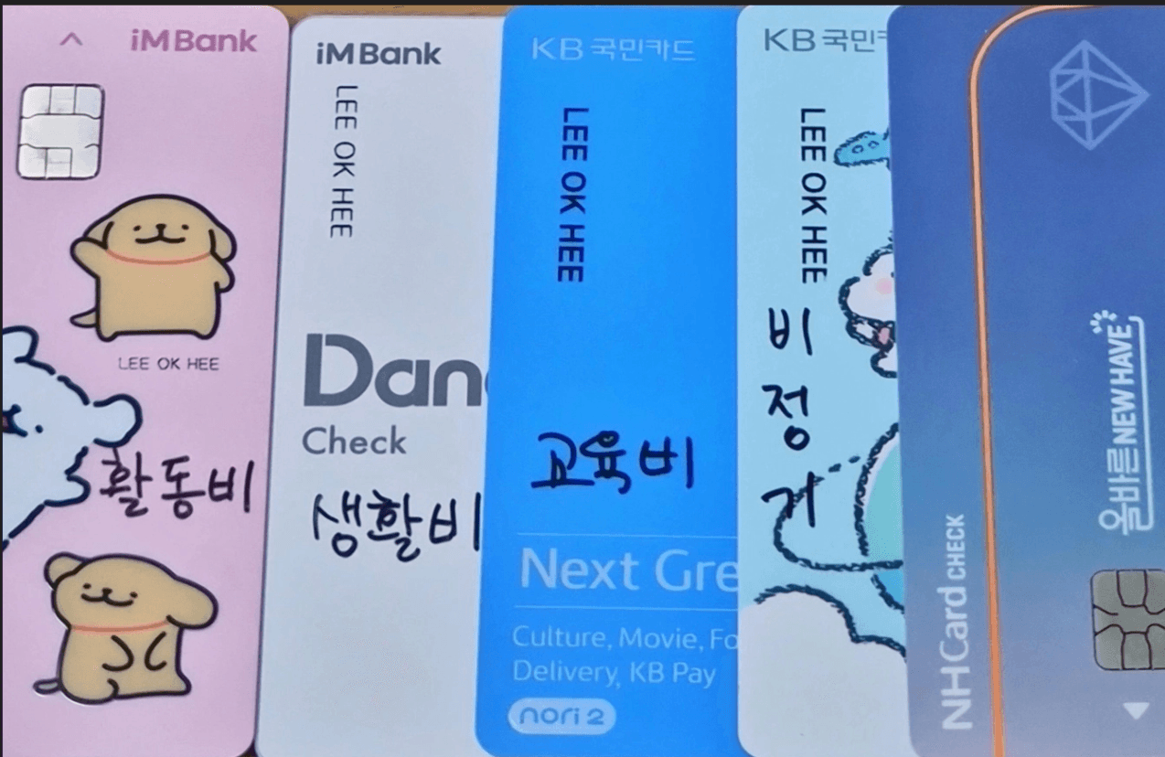 1. 용도별로 나눈 카드 인증샷 (모바일 통장쪼개기 인증샷도 좋아요!)