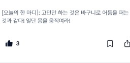 BEST | 이 말씀 한마디에 또 한발자국 앞으로 가보겠습니다. 여기서 그렇게 강의 듣고 쏘댕겼어도, 100% 차분하다고는 말 못하겠더라고요. 그래도 요즘 빈도가 확늘어난 피드글들을 보고 나름 소화하고 지내요, 마스터님. 글써주셔 감사합니다. 저녁 식사 잘하시구요!🐦