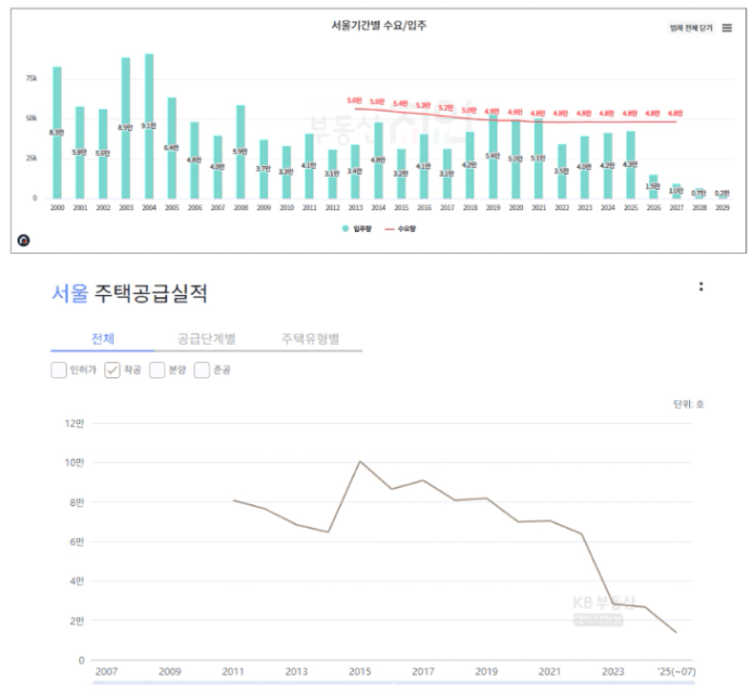 하나는 신축의 입주로 인해 공급이 되는 것이며