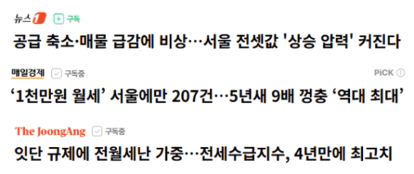 이런 상황이다보니 전/월세 가격이 상승하는 것은
