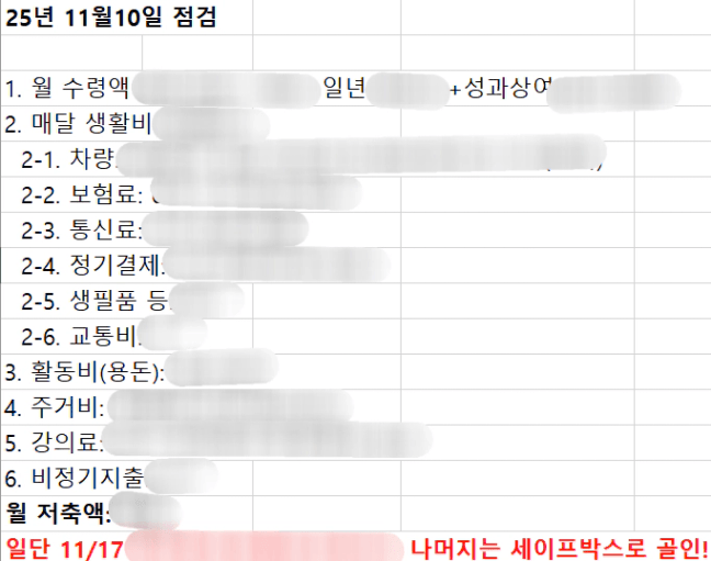 생활비와 세이프박스에 넣을 돈들은 남편과 카카오뱅크 모임통장에서 함께 관리하기로 했다