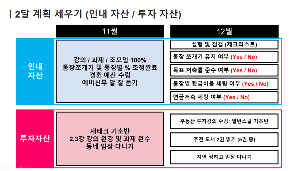 2️⃣ 2달 계획 확인 후, 11월 한 달 간의 목표와 확언 부분 작성