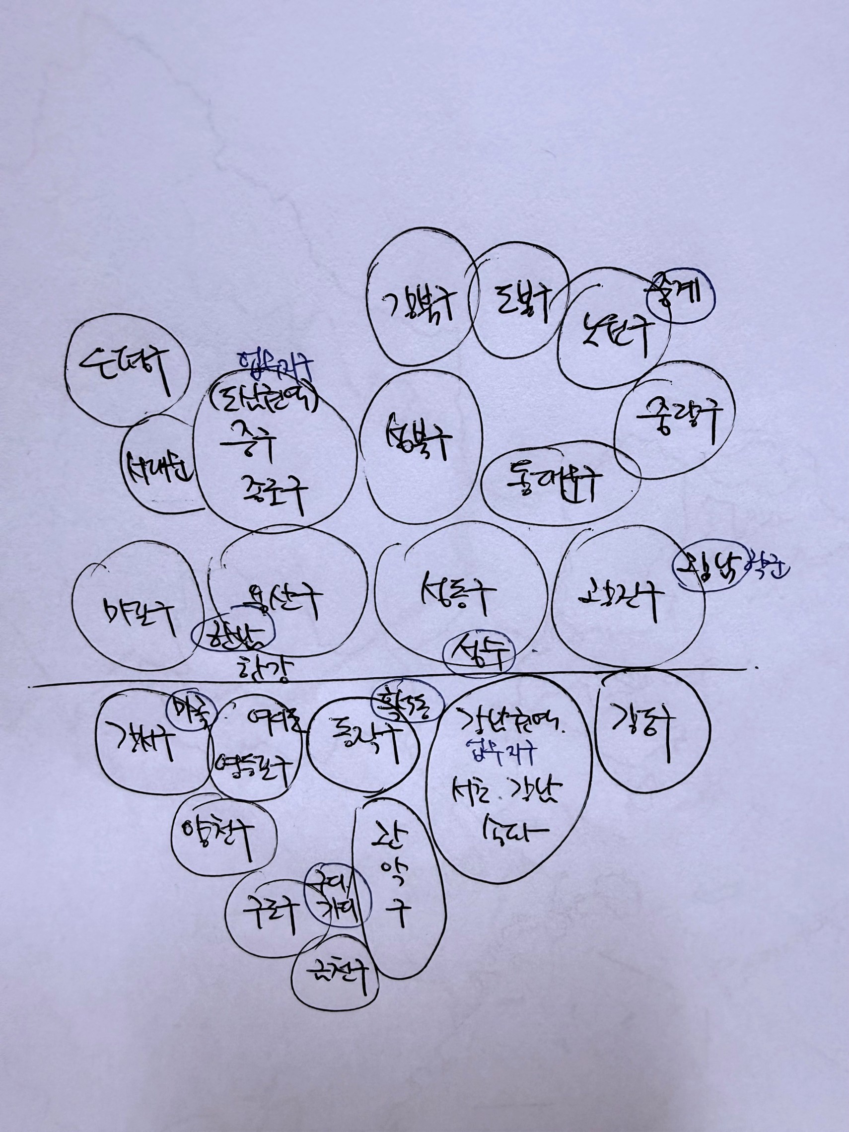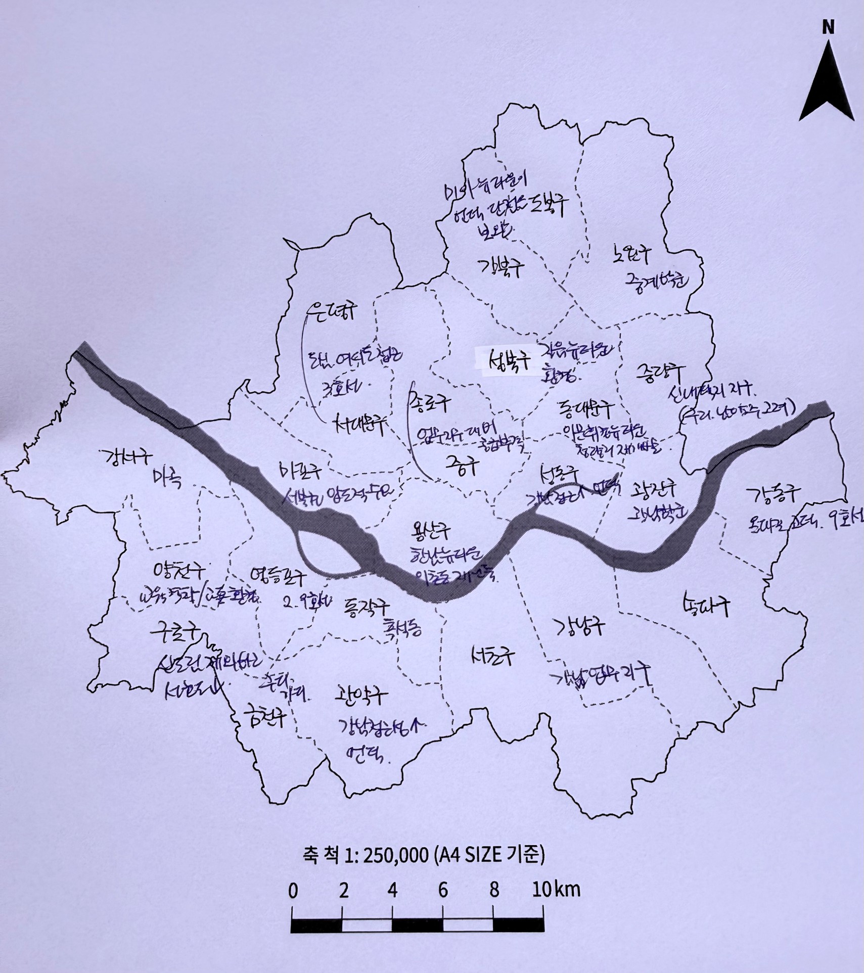 서울 지리는 잘 모르는 저로서는 거의 지도를 외워야 하는데, 한 눈에 볼 수 있게 지역 특징을 알려주셔서 좋았습니다.