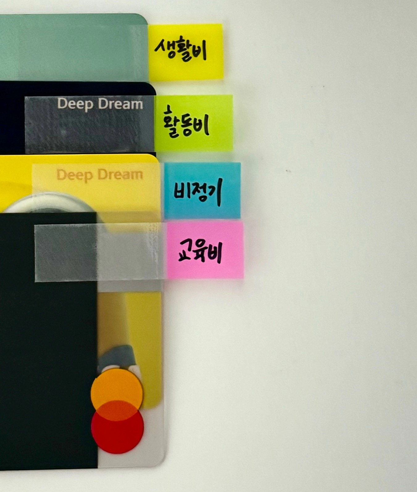 사용하는 카드는 많았는데 각각의 쓰임을 두고 사용하지 않았기 때문에 이번 강의를 듣고 생활비, 활동비, 비정기, 교육비 이렇게 나눠봤다. 신용카드는 원래 사용하지 않았기 때문에 해지하거나 잘라서 버리는 일은 없었다. 신용카드를 사용하지 않은 건 내가 한 일 중 제일 잘한 일..