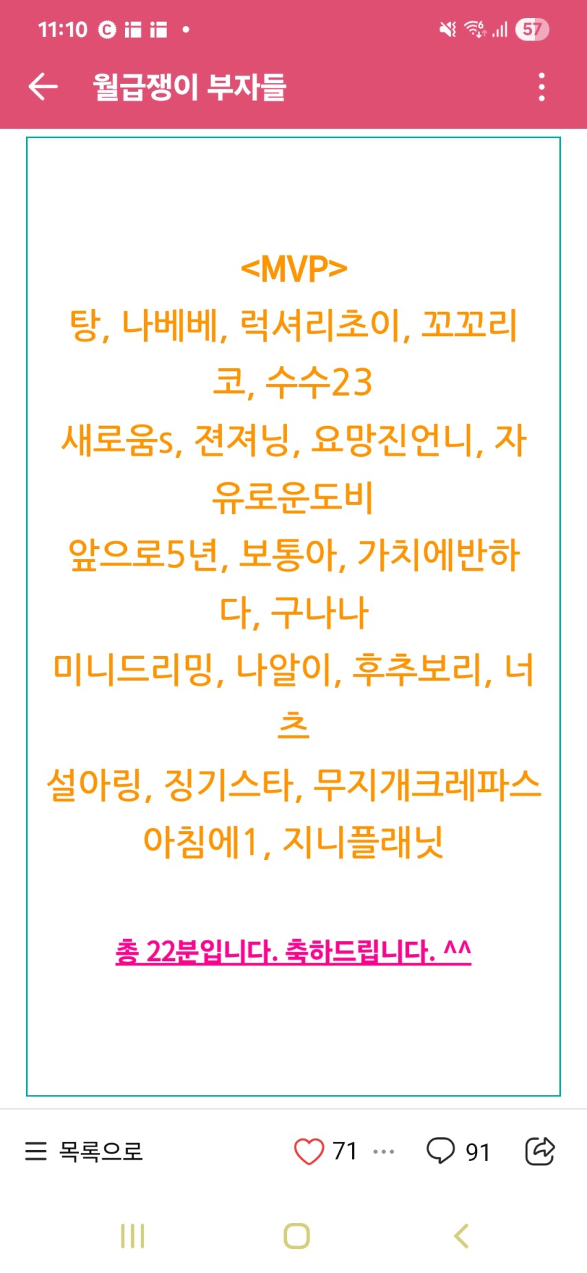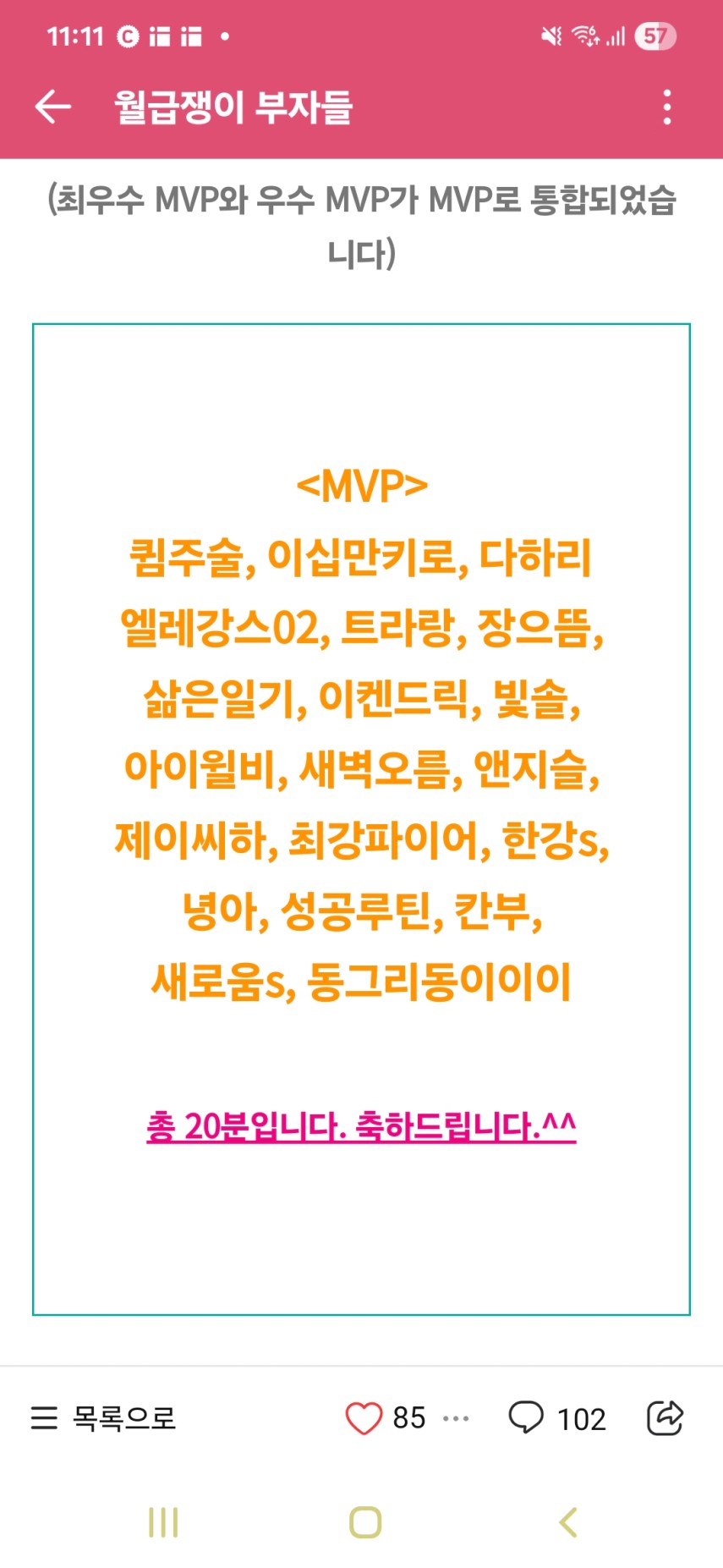 조원이지만 MVP를 받으시는 능력자 분들도 계시지만