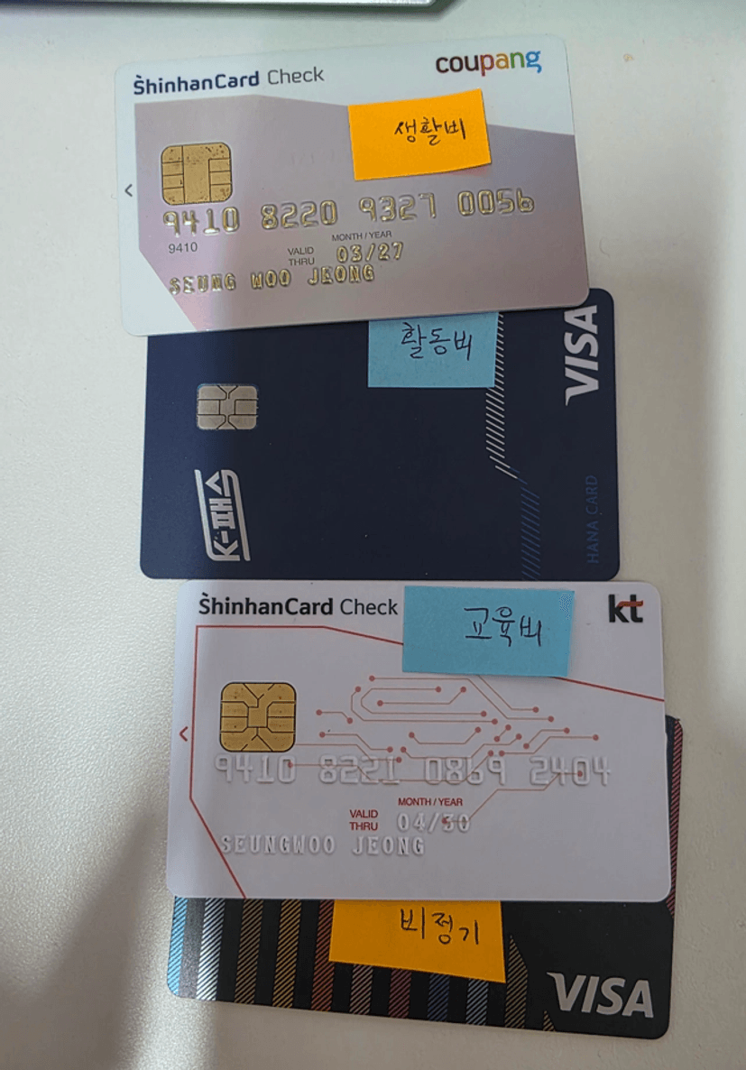 1. 용도별로 나눈 카드 인증샷 (모바일 통장쪼개기 인증샷도 좋아요!)