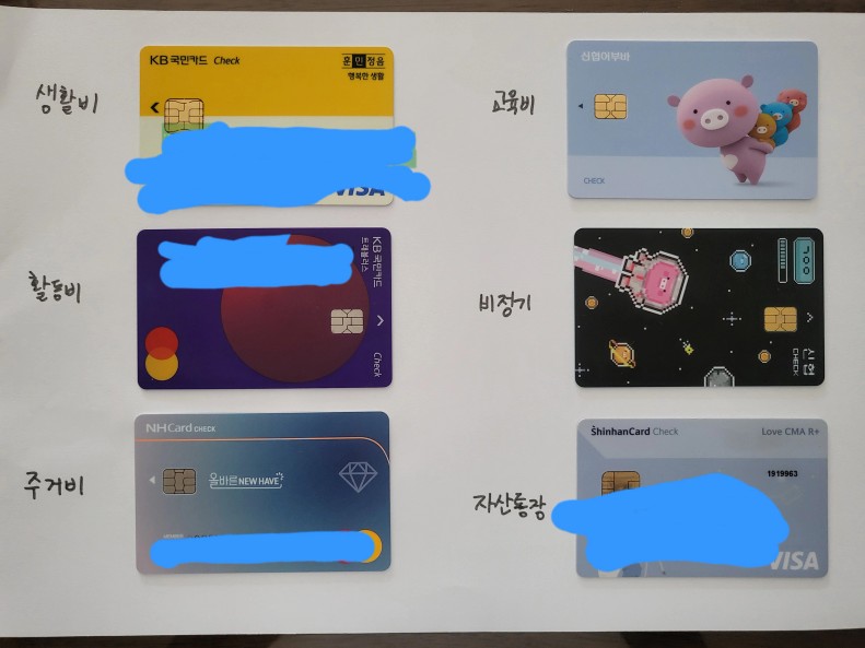 1. 용도별로 나눈 카드 인증샷 (모바일 통장쪼개기 인증샷도 좋아요!)