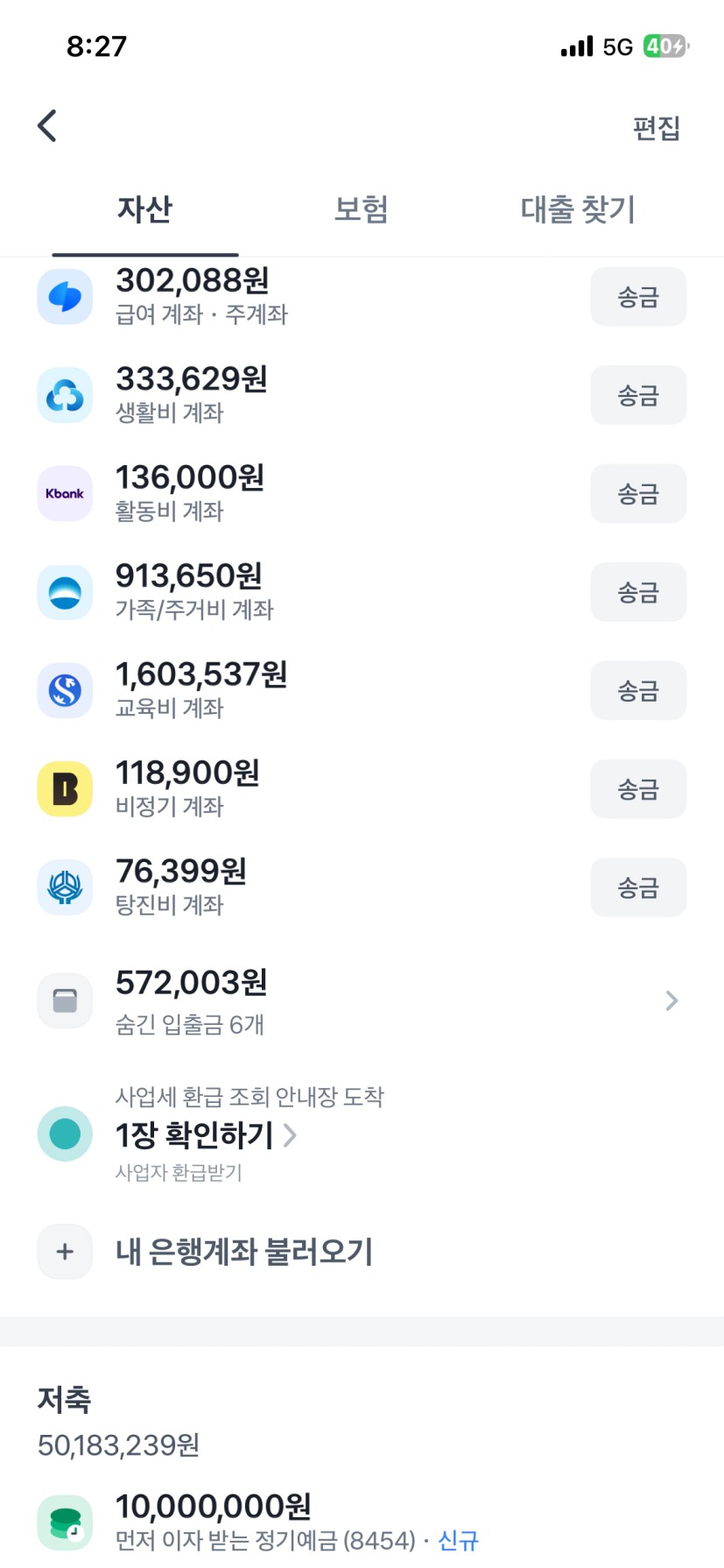 | 생활비 | 6% | 식비 20, 보험료 12, 생활용품 1.5, 통신 3.5 |