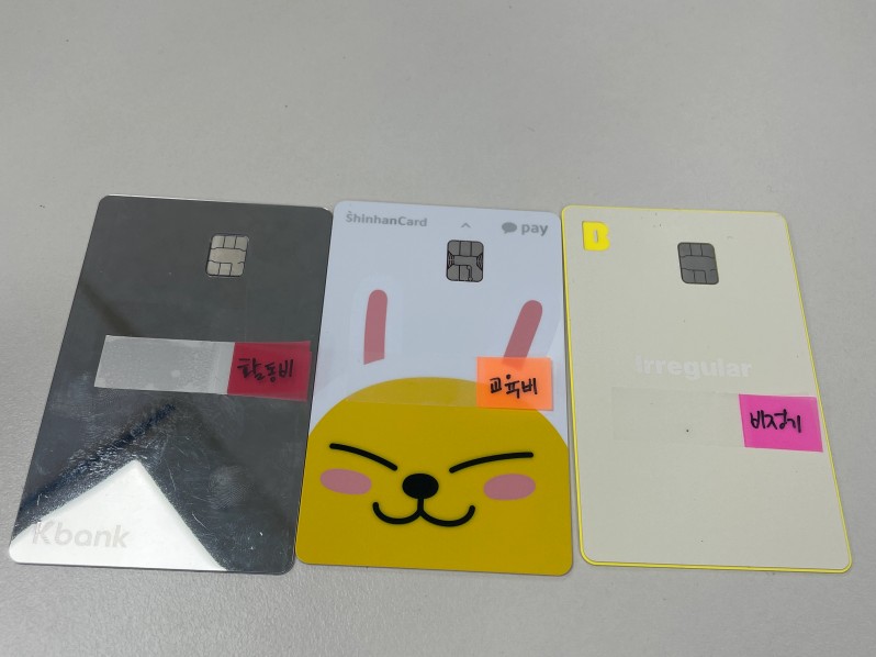 1. 용도별로 나눈 카드 인증샷 (모바일 통장쪼개기 인증샷도 좋아요!)
