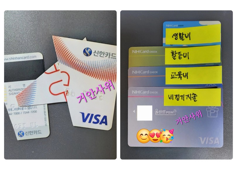 1. 용도별로 나눈 카드 인증샷 (모바일 통장쪼개기 인증샷도 좋아요!)