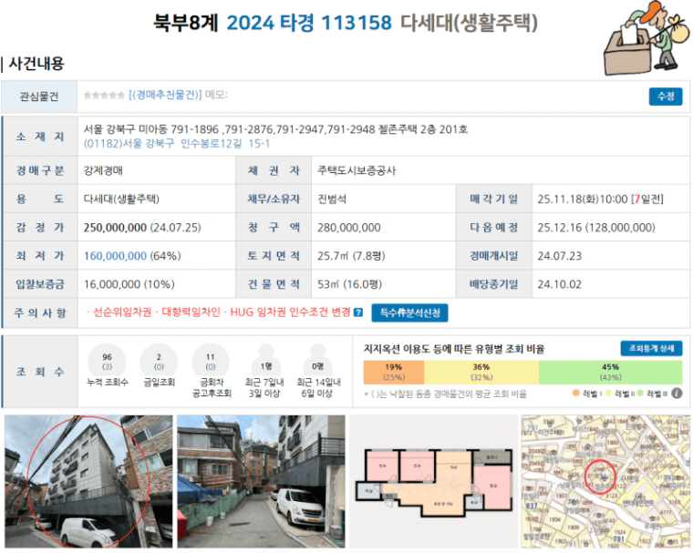 주변 교통과 생활 인프라가 안정적인 미아 생활권이라, 실제 입찰 타이밍으로도 적기입니다.