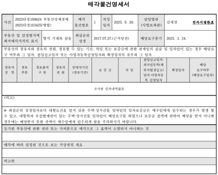 ✔ 말소기준권리, 임차인 대항력 여부 등 권리분석 완료