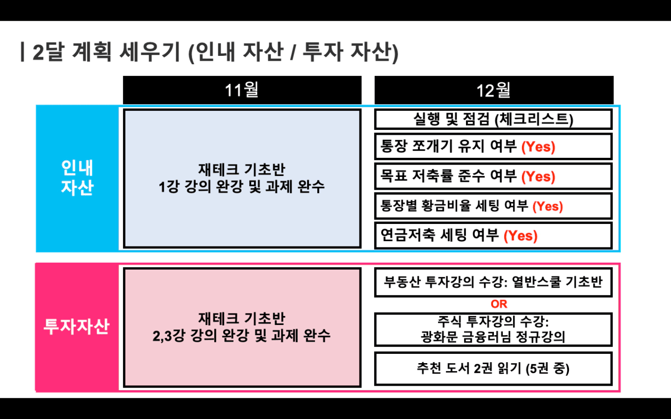 2️⃣ 2달 계획 확인 후, 11월 한달 간의 목표와 확언 부분 작성