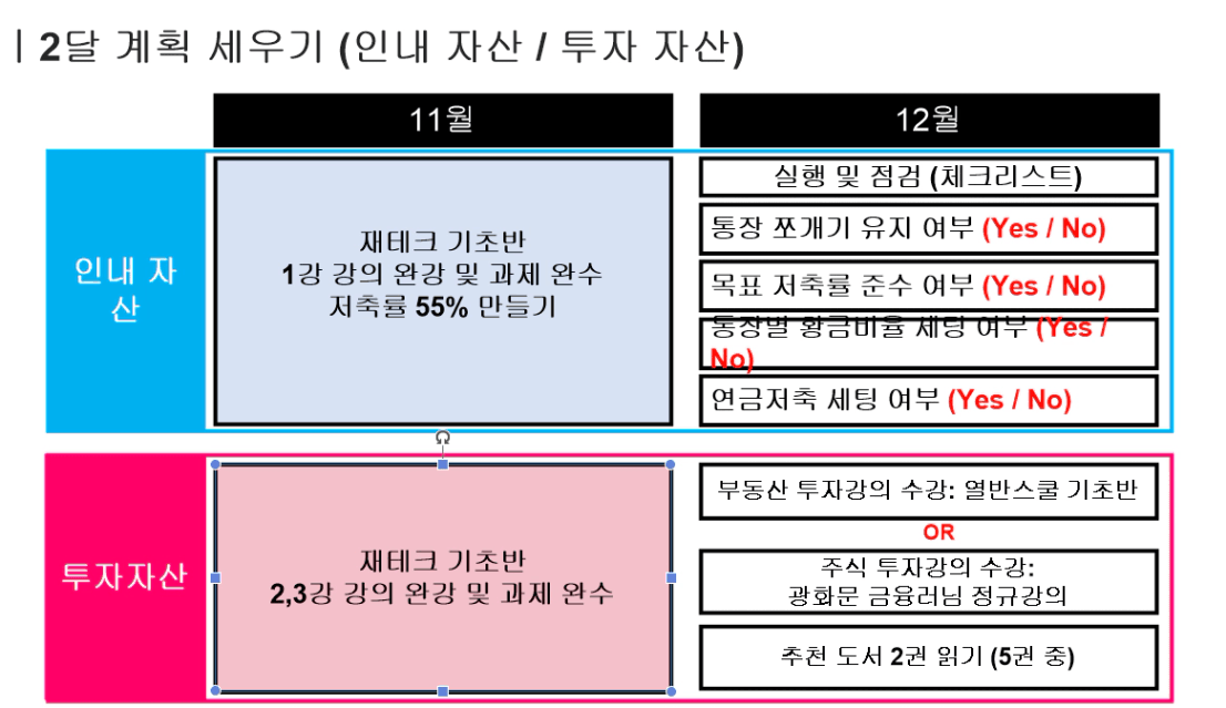 2️⃣ 2달 계획 확인 후, 11월 한달 간의 목표와 확언 부분 작성