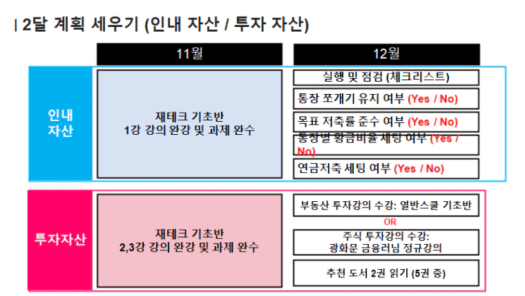 2️⃣ 2달 계획 확인 후, 11월 한달 간의 목표와 확언 부분 작성