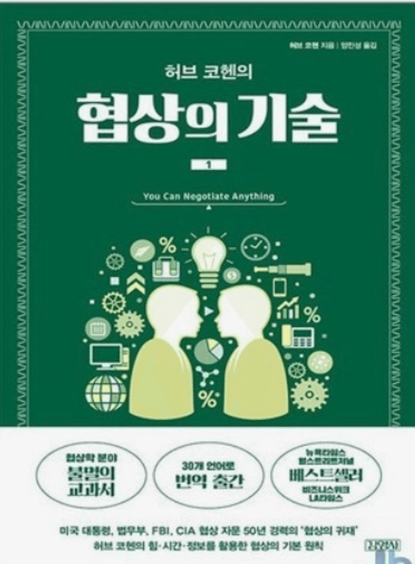 이 책은 일상에서든 비즈니스 상황에서든 언제든지 우리가 마주할 수 있는 모든 협상에 대해서 대비하고 방어할수 있게 도와준다. 책을 읽고 나서든 생각은 나는 그동안 협상을 할 수 있는 상황에서도 지레겁을 먹고 소극적으로 대처해은 탓에 크고 작은 손해들 은 나도 모르는 사이에 보면서 살았던 것같다. 당연히 나같아도 안깍아주겠지생각하며 가격흥정을 거의 해본적이 없어서, 월부에들어오고 이책을 접하면 그간 얼마나 순진하게 살았는지 실감하고 있다.