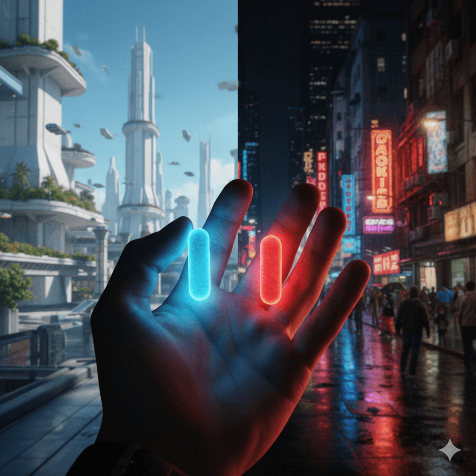 영화 <매트릭스>에서 파란색 알약(가짜 유토피아)과 빨간색 알약(가혹한 현실) 중 하나를 선택해야 한다면, 어떤 것이 옳은 선택인지 아직도 잘 모르겠다.