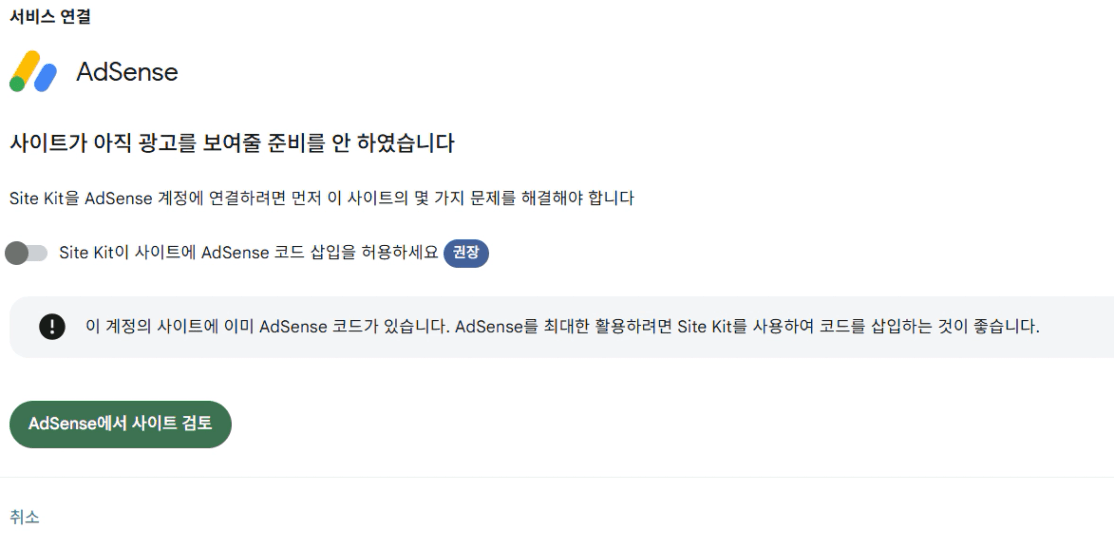 워프 사이트 킷 애드센스로 들어가 보니 이렇게 나오는데요,  이게 문제인 경우엔 어떻게 조치를 해야 할까요??