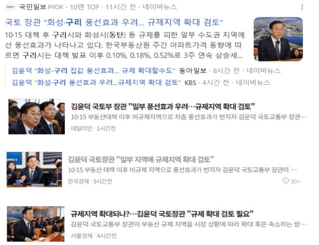 규제 지역을 확대 한다 내용의 기사가 많이 보였습니다.
