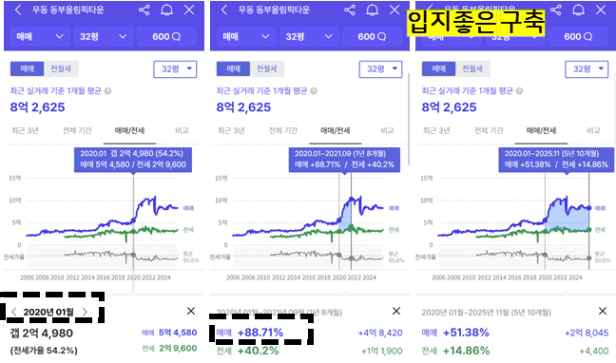 상대적으로 입지 좋은 신축대비 상승흐름이 늦습니다.