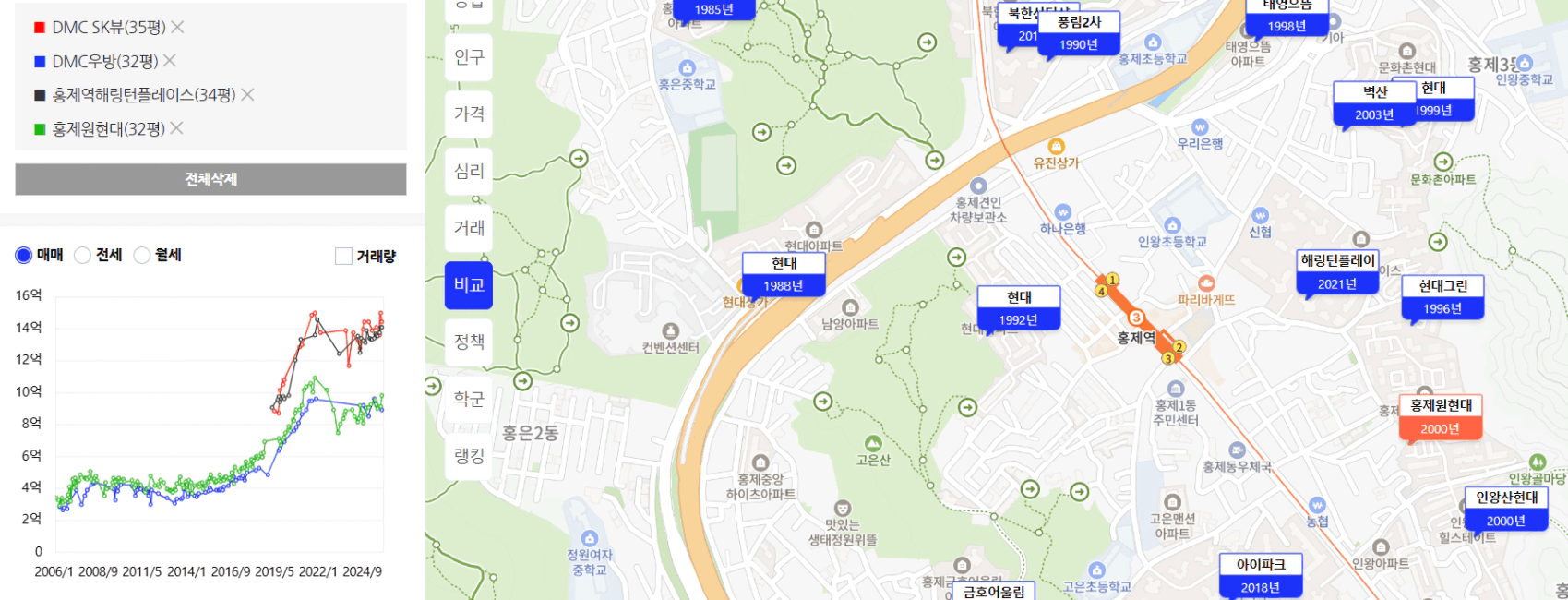 1)환경이 좋고 신축이 모여 있는