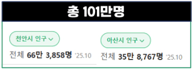 천안은 생활권을 공유하는 아산의 인구까지 합하면 101만명이지요.