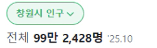 인구수는 비슷하지만 창원은 인구가 줄어들고 있는 반면