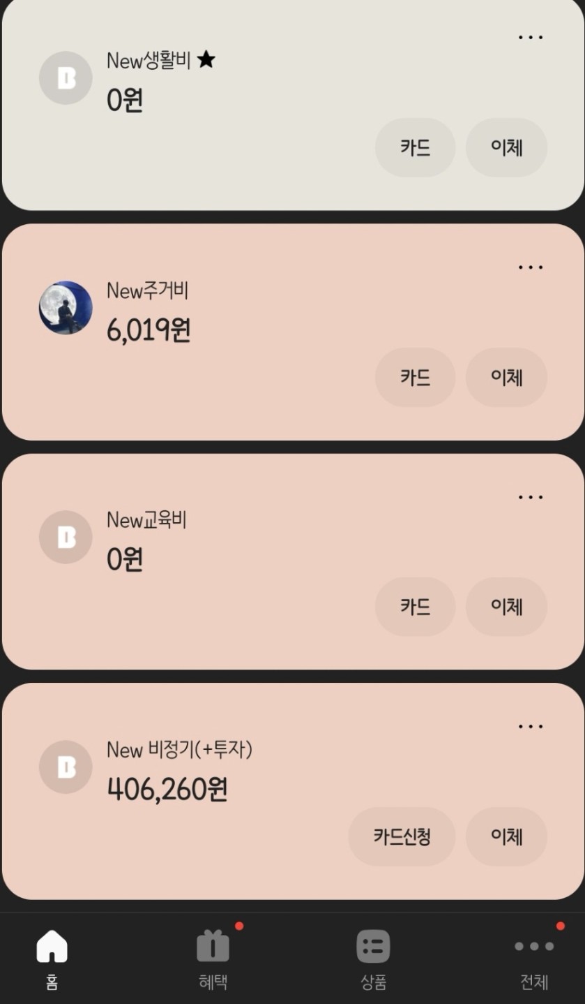 (각 통장별 지출정리 / 범위 내에서만 쓸 수 있도록 준비)