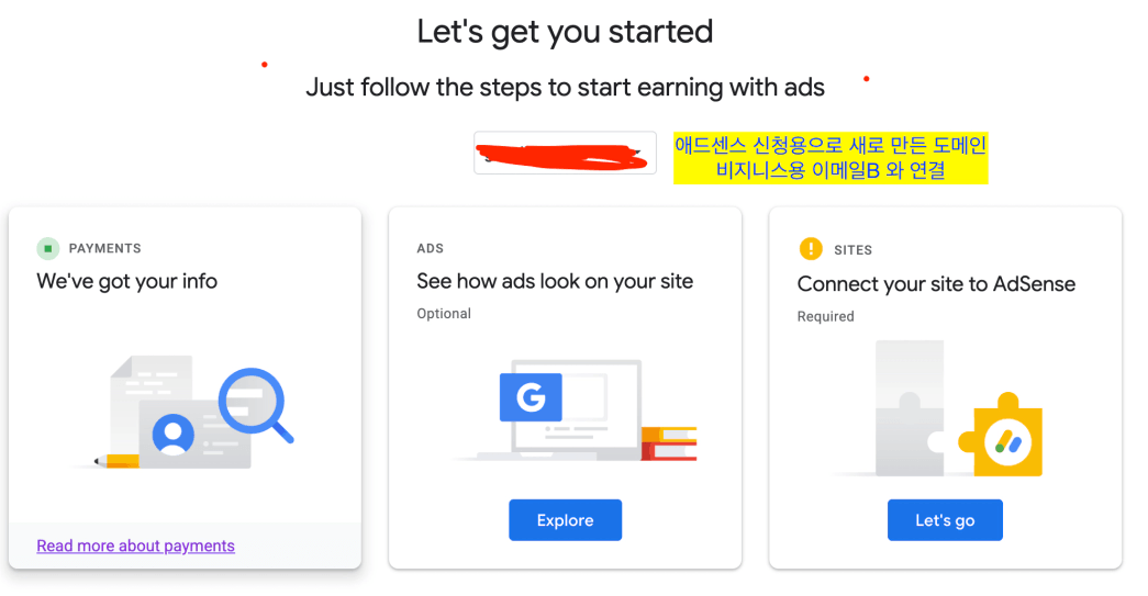 도대체 왜 제 새 도메인은 비지니스용 이메일을 B 애드센스에 연동이 되어있는걸까요 하아 ..