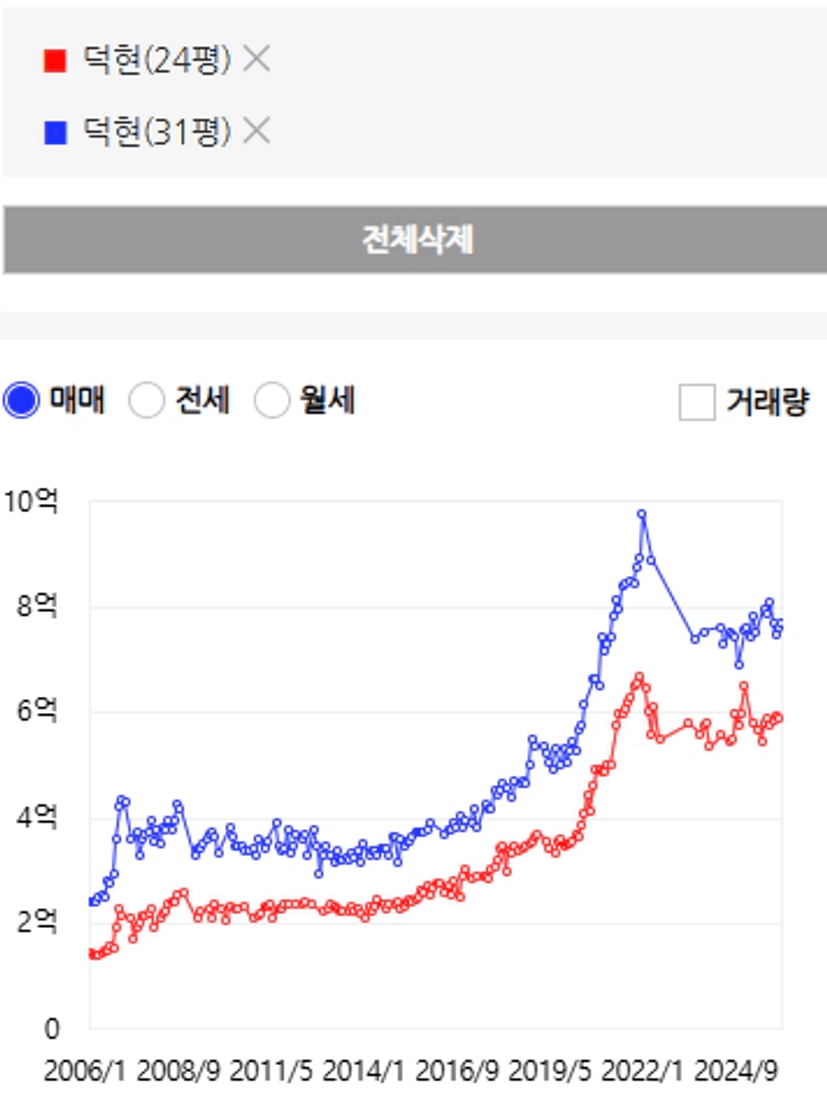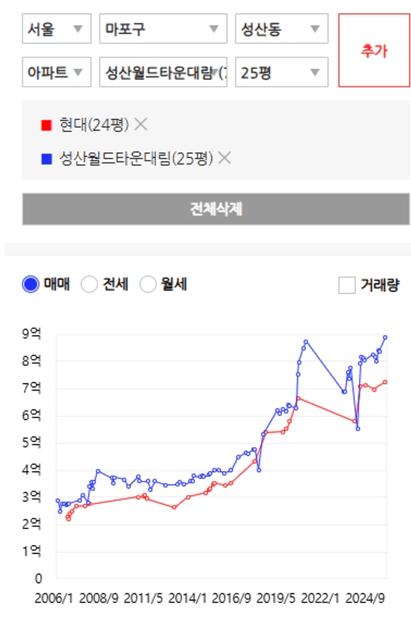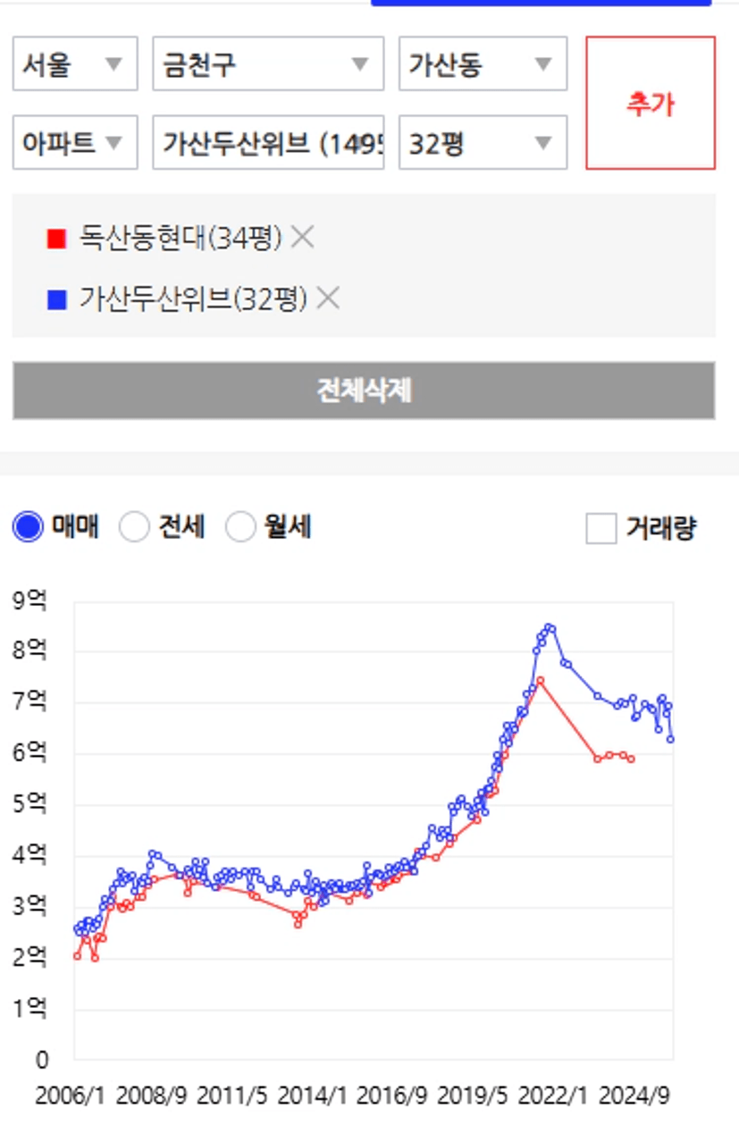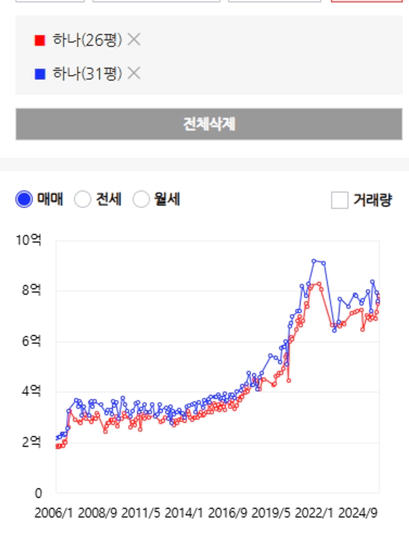 물론 구조나 단지퀄등 다른 요인들도 가격에 영향을 주겠지만,