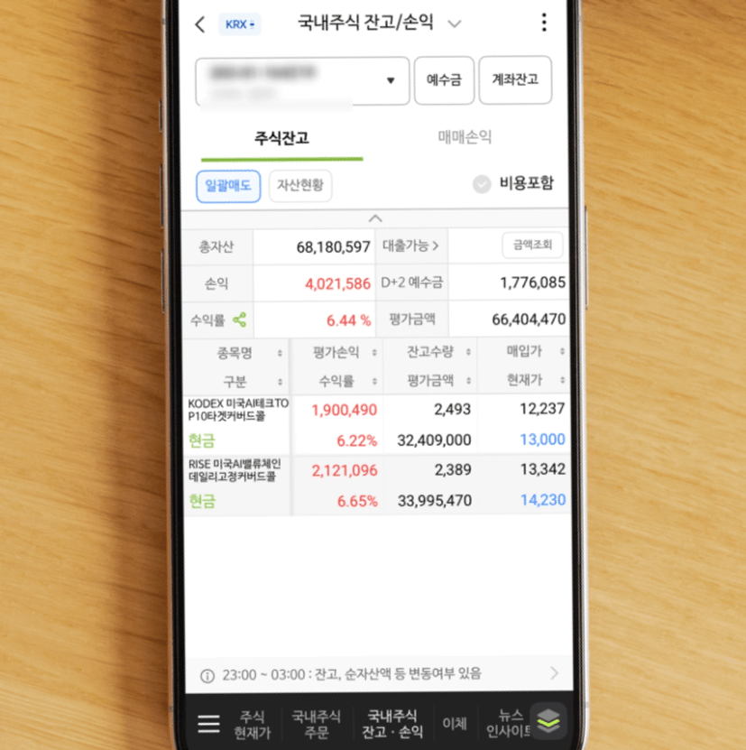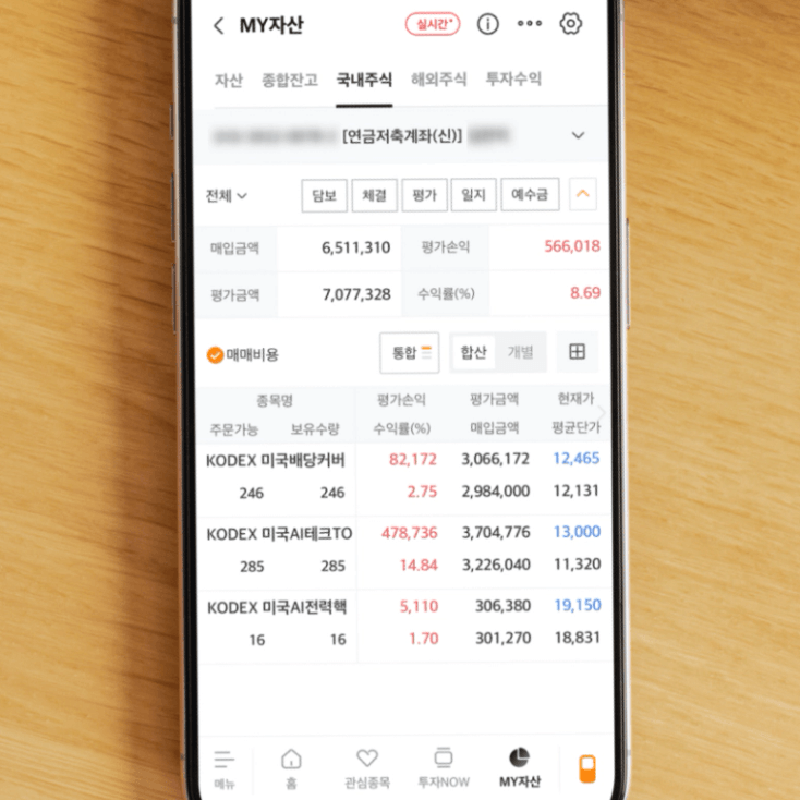 Kodex미국배당커버드콜 액티브 | 월중 | 일반 계좌: 993만 2,292원 연금저축계좌: 298만 4,000원 소계: 1,291만 6,292원 |