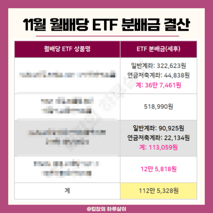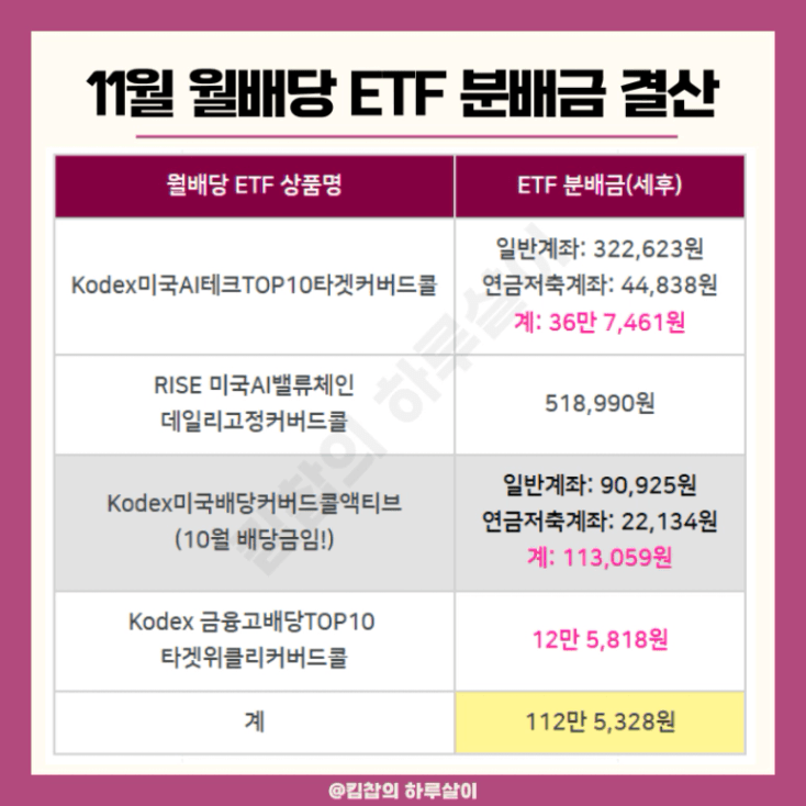 커버드콜 월배당 ETF를 주로 담고 있습니다.