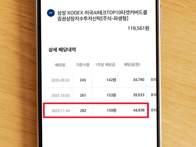 Kodex미국AI테크TOP10 타겟커버드콜 | 월말 | 일반 계좌: 3,050만 6,841원 (일부 매도 후 재매수) 연금저축계좌: 322만 6,040원 소계: 3,373만 2,881원 |
