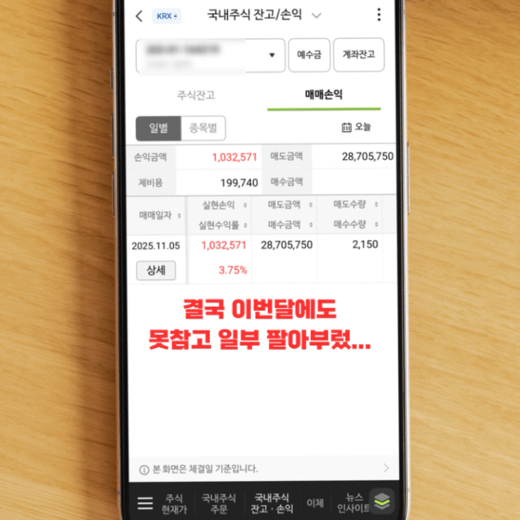 (일부 매도하여 다른 종목에 잠시 물타기 했어요)