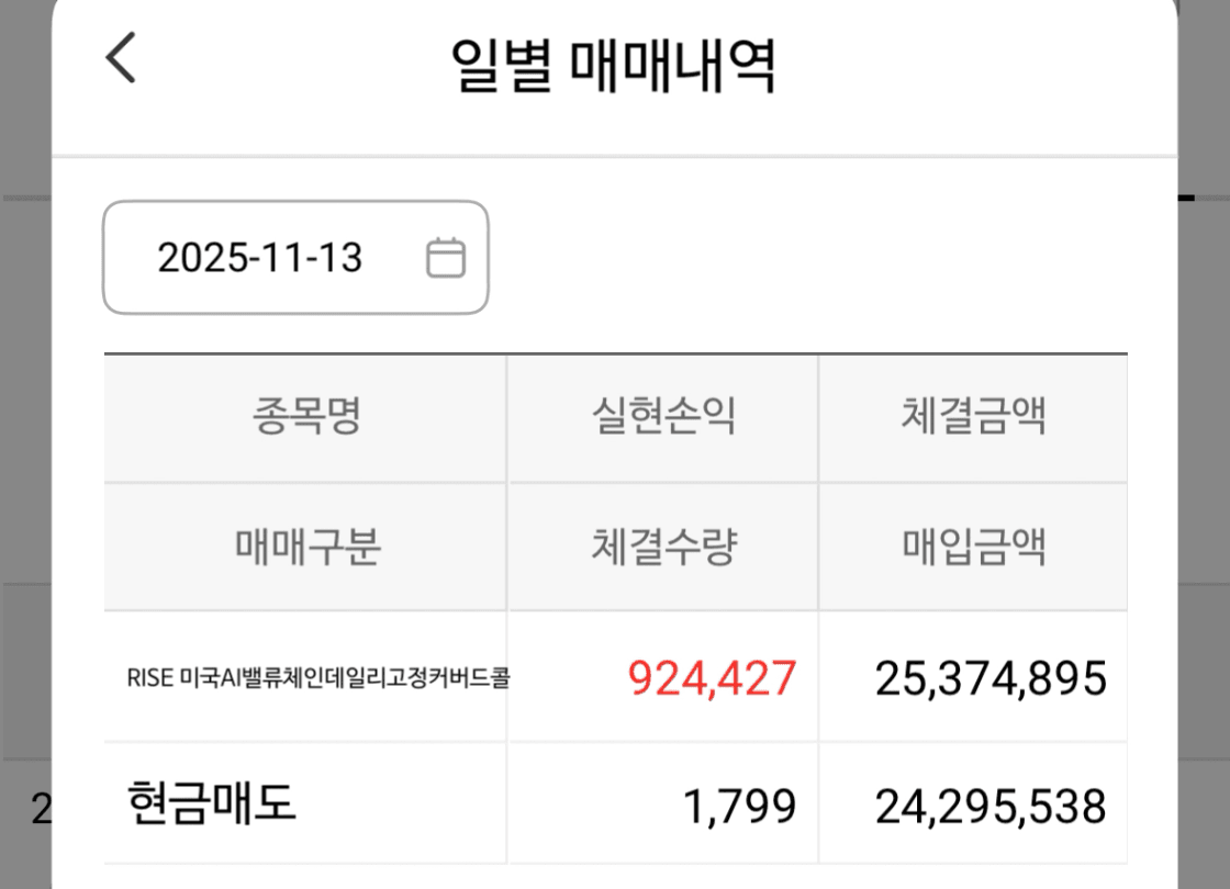 RISE 미국AI밸류체인 데일리고정커버드콜 (8월 신규편입) | 일반 계좌: 3,187만 4,038원 (일부 매도 후 재매수) | |